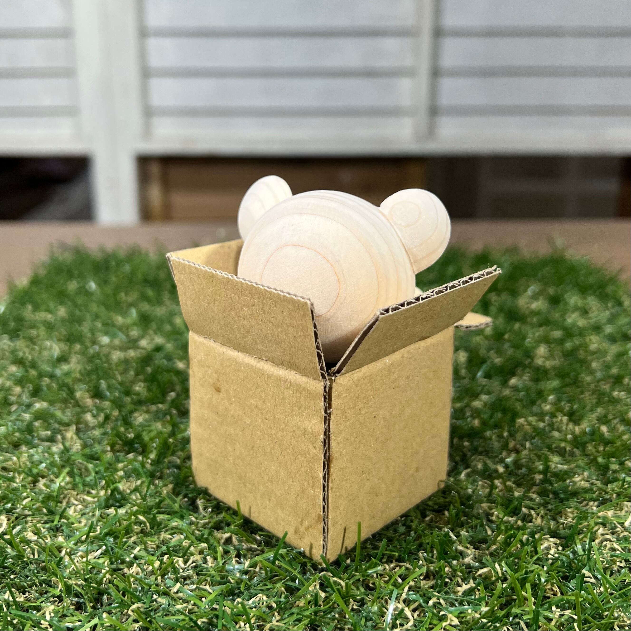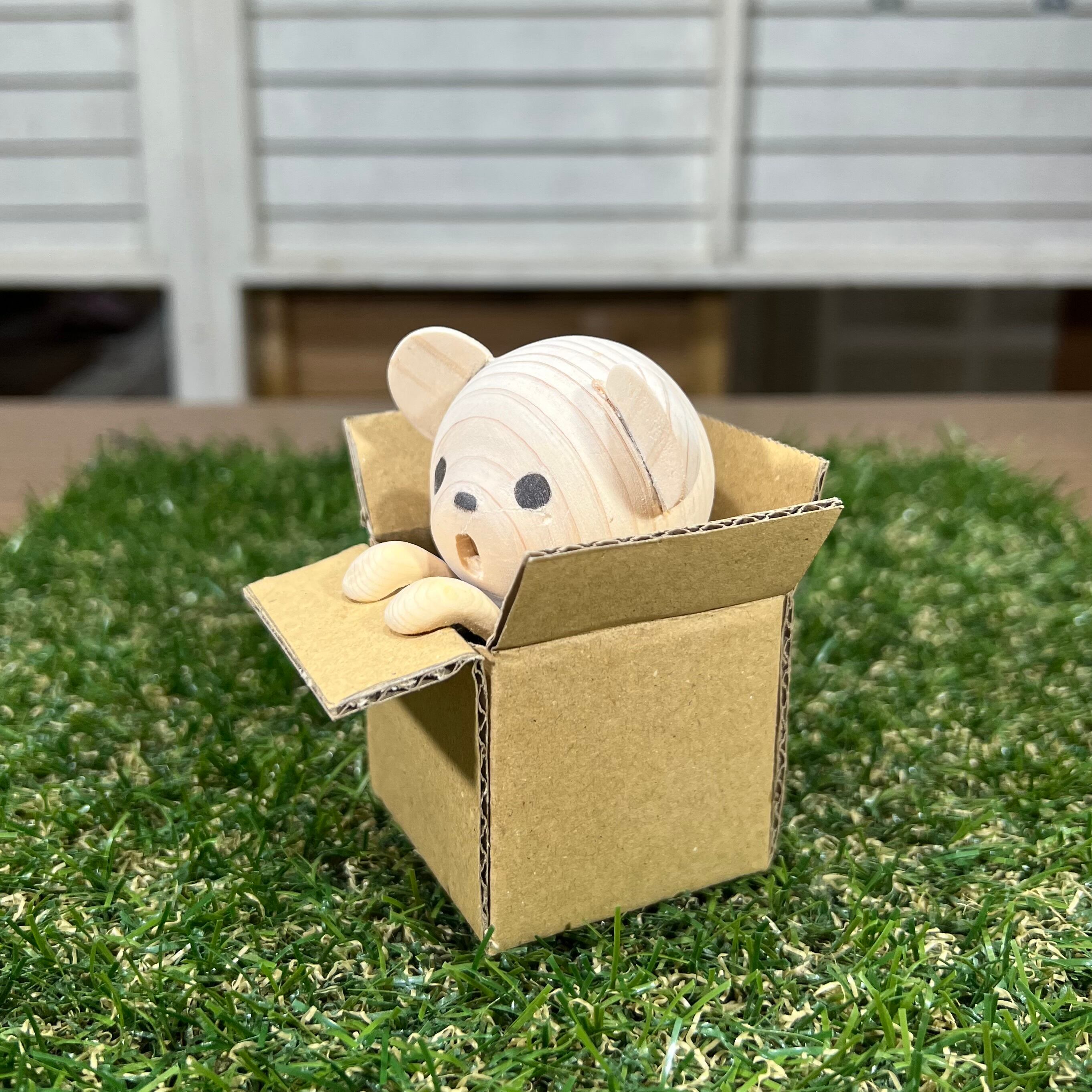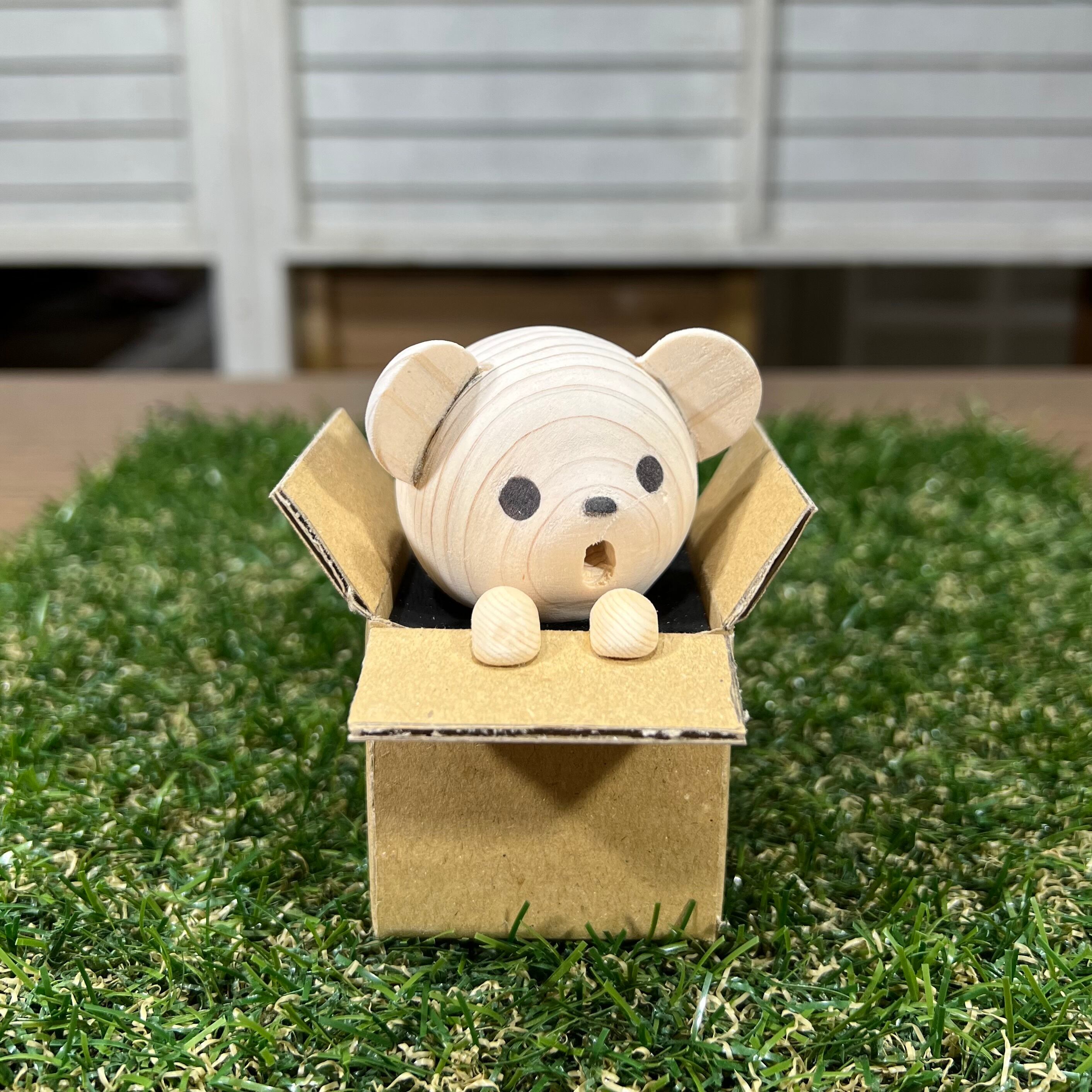 白木を彫って作ったちびくまくんを