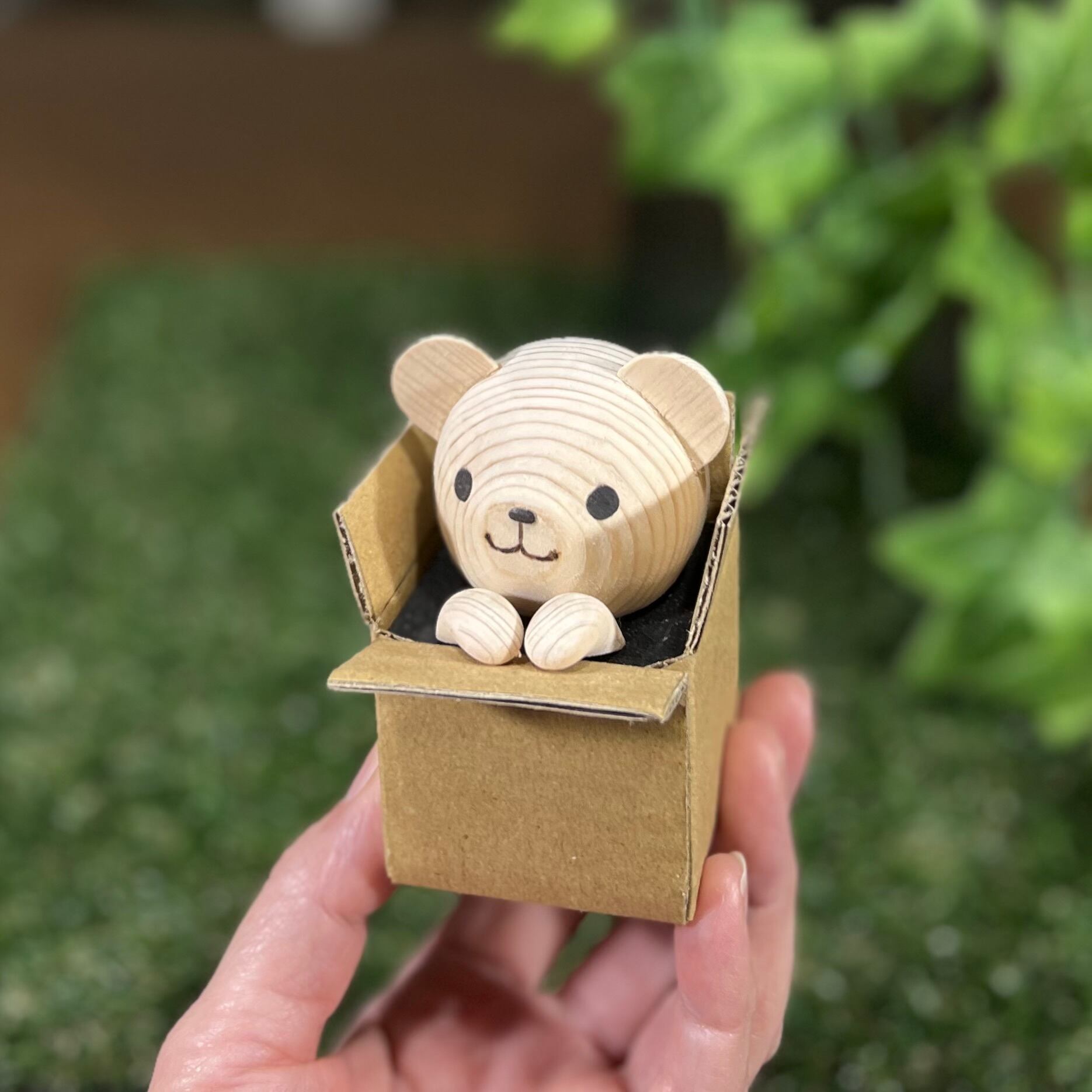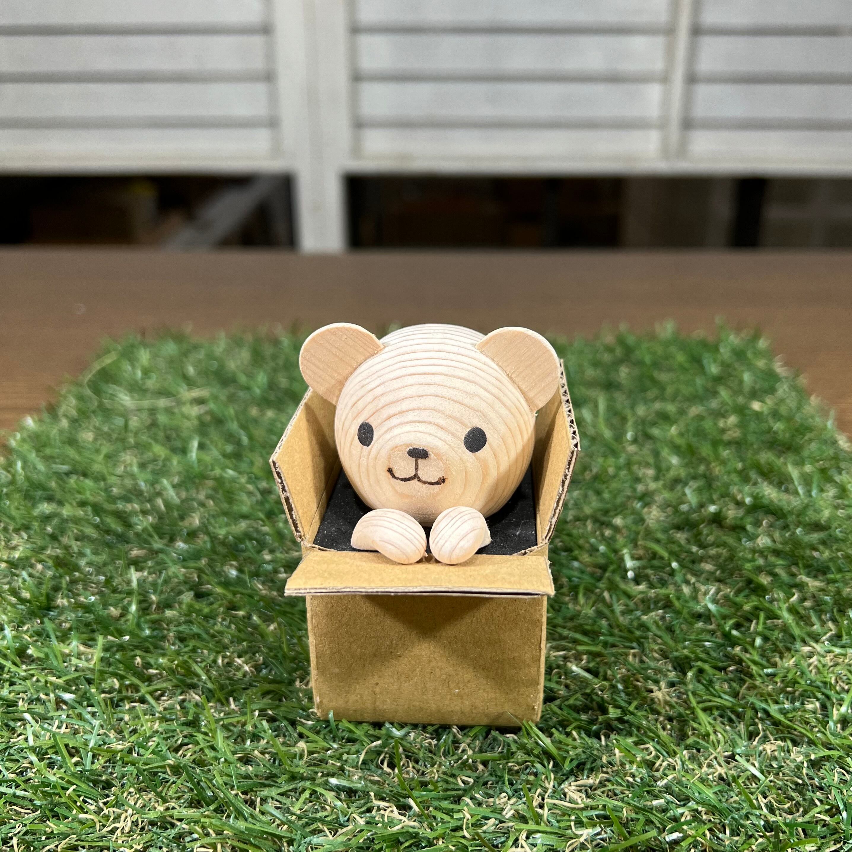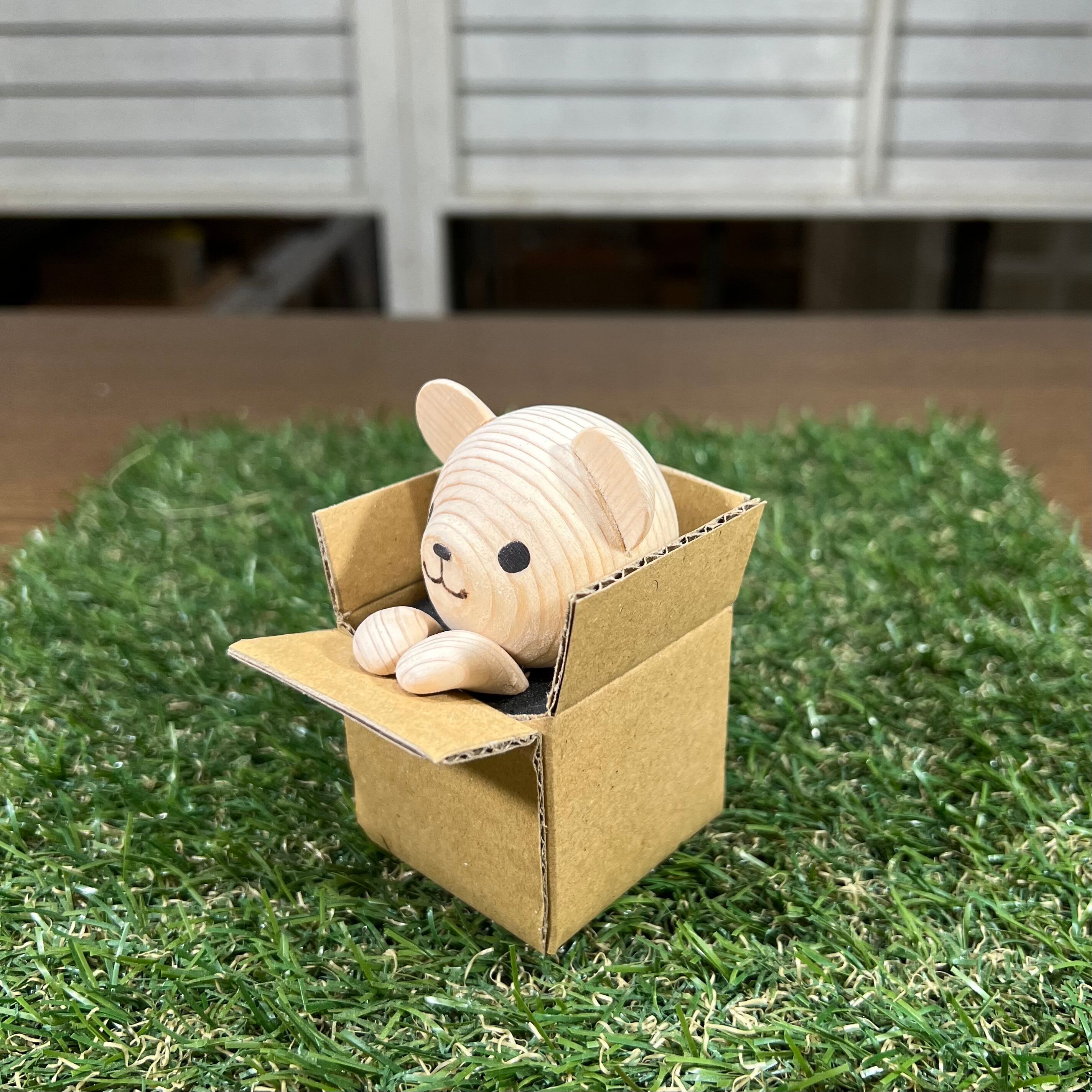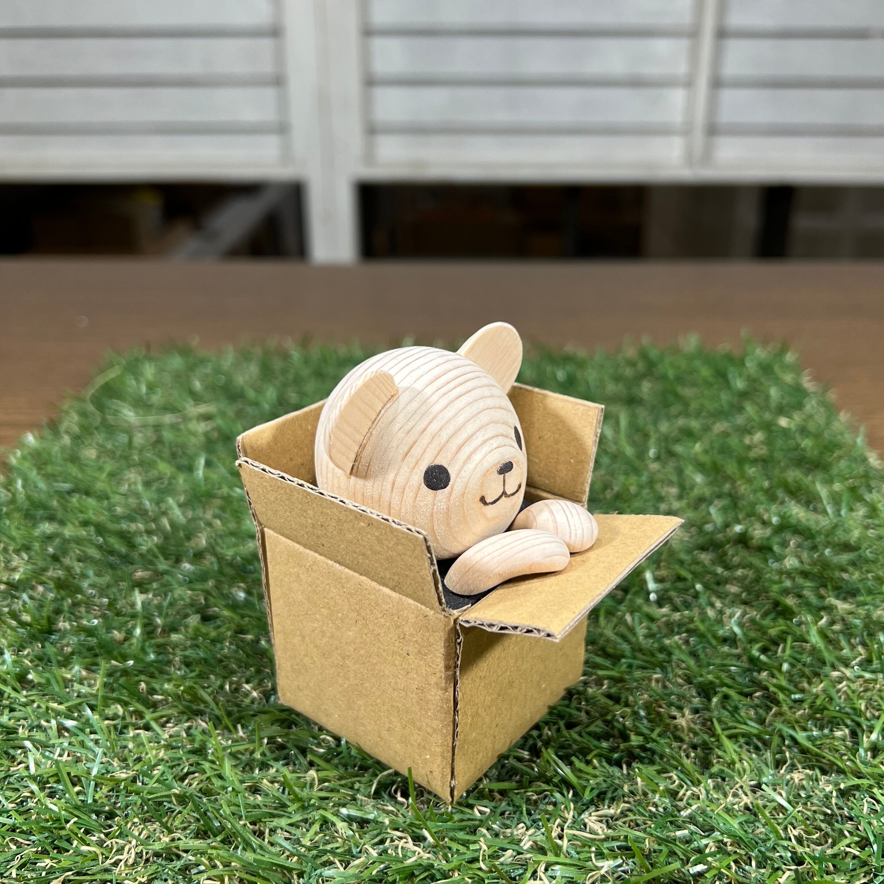 白木を彫って作ったちびくまくんを