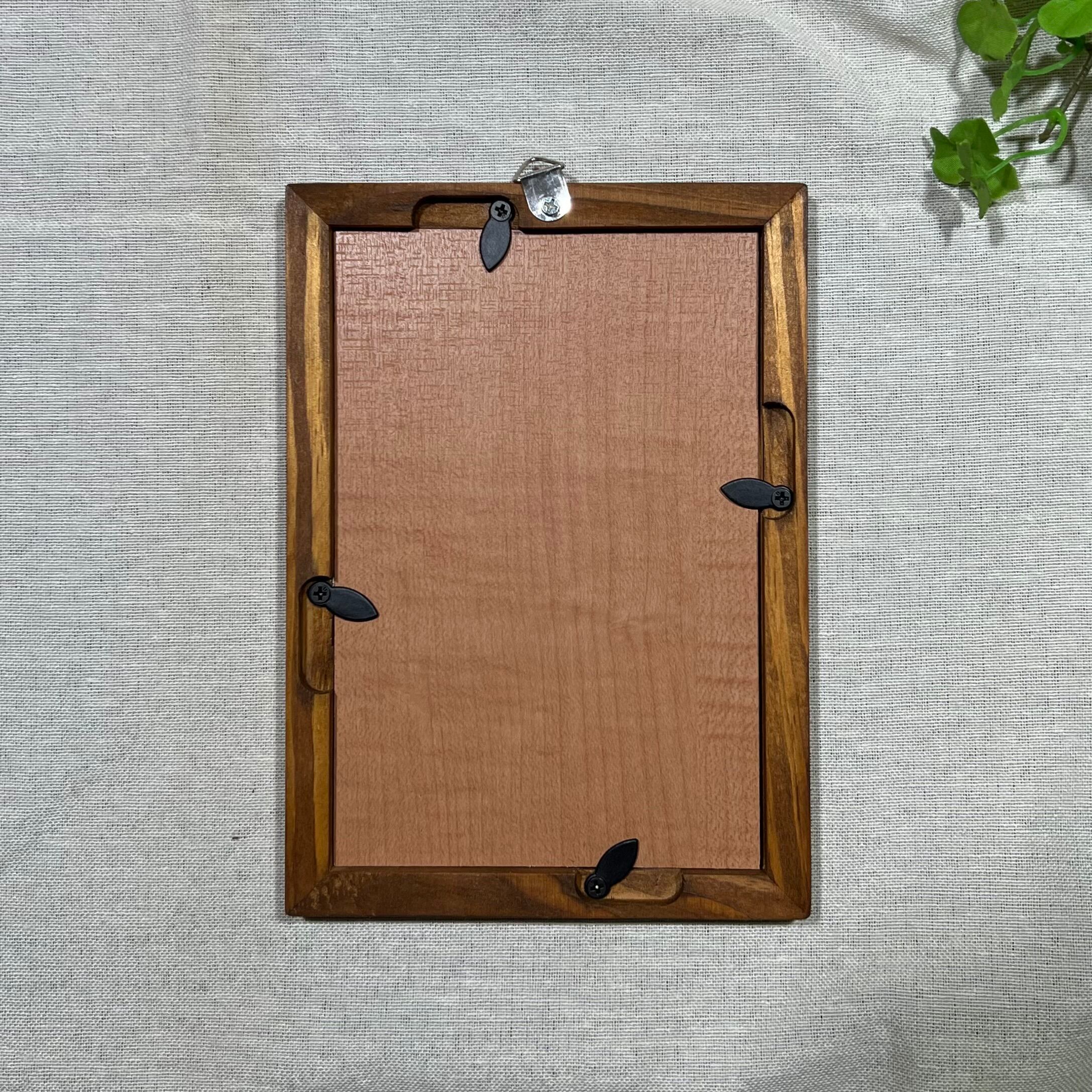 届いて直ぐに飾れるように木のフレームに入れました。