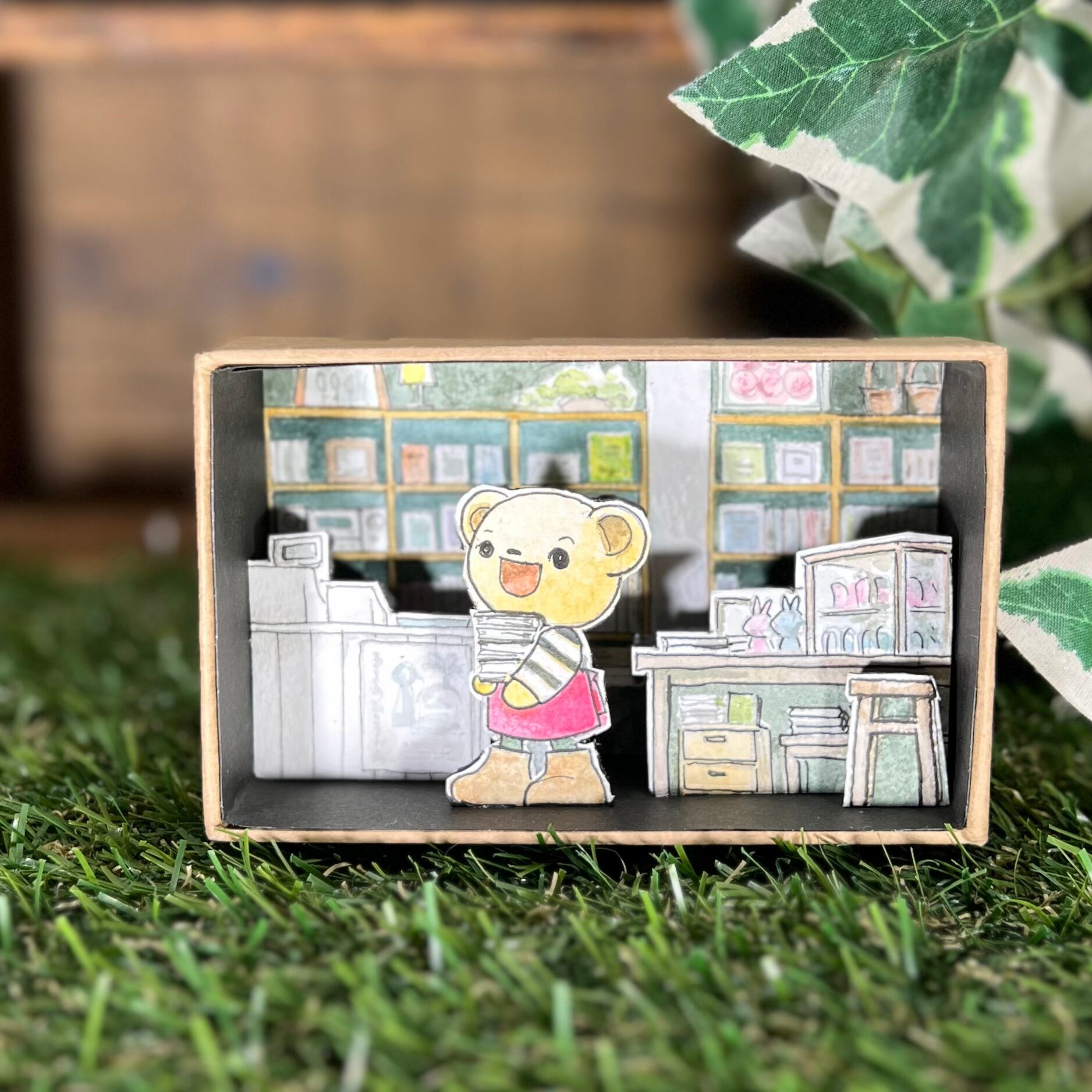 紙の箱の中にできたちびくまくんのお店