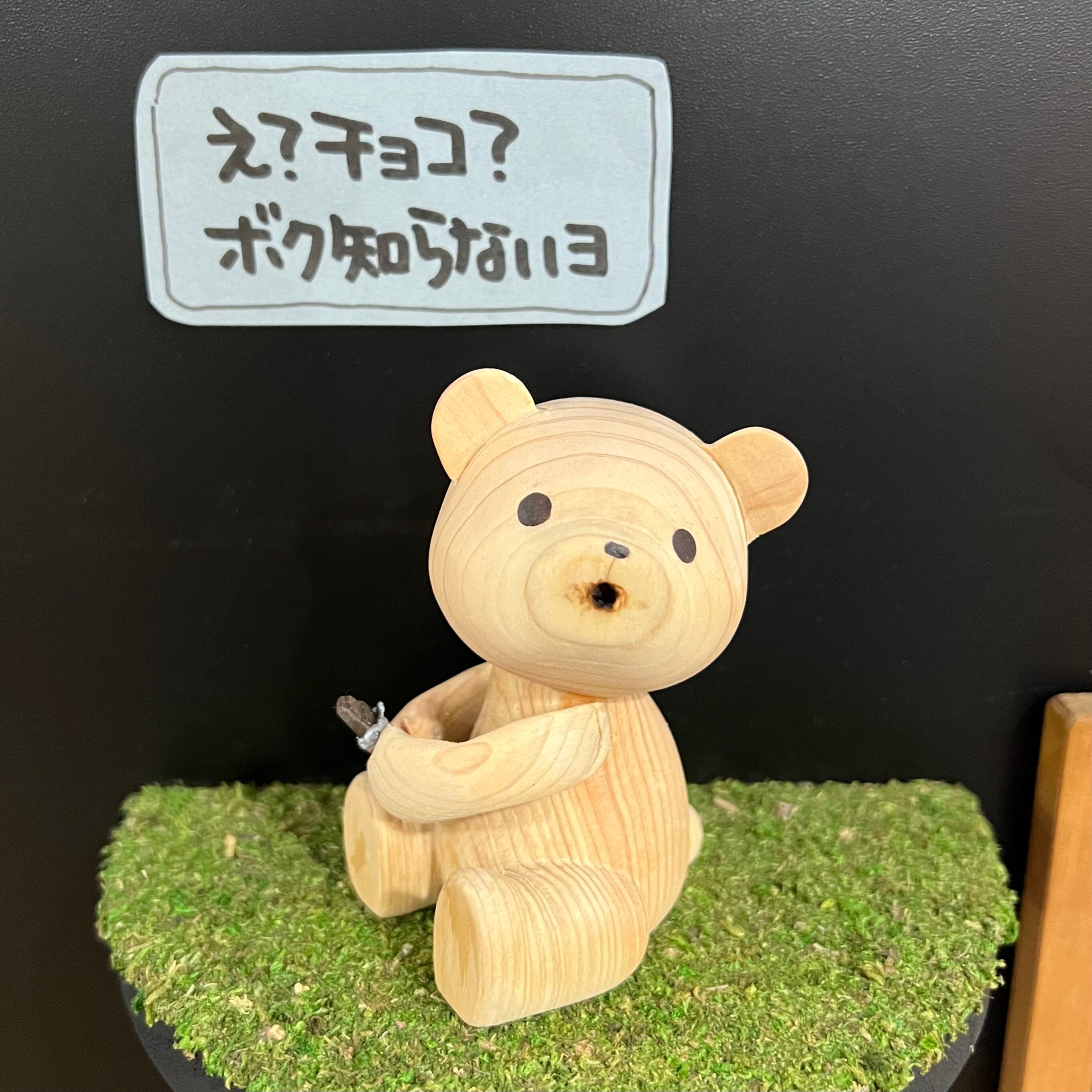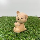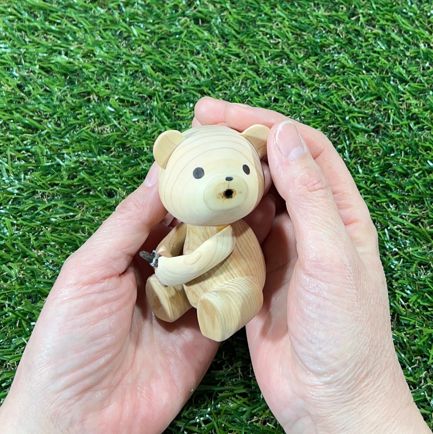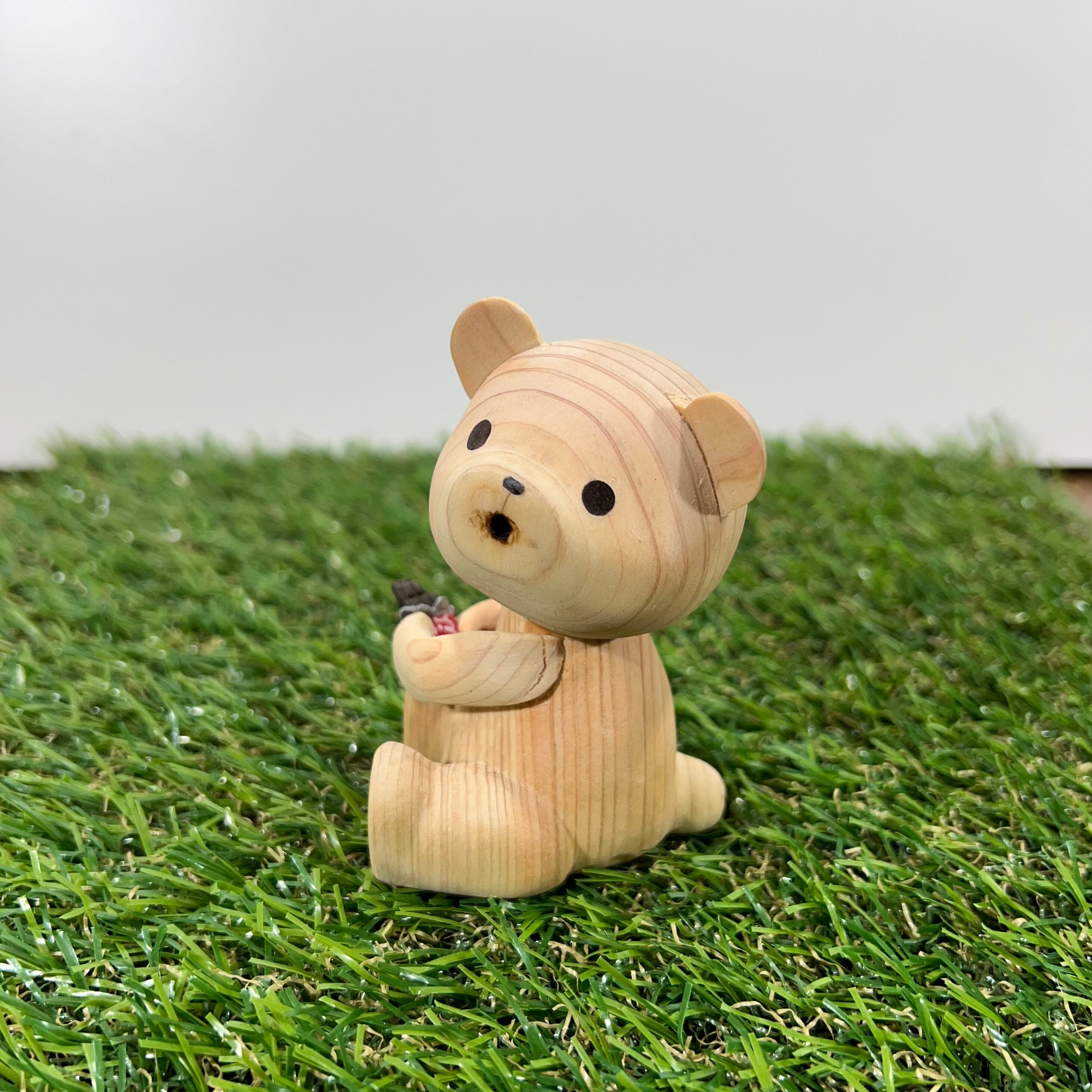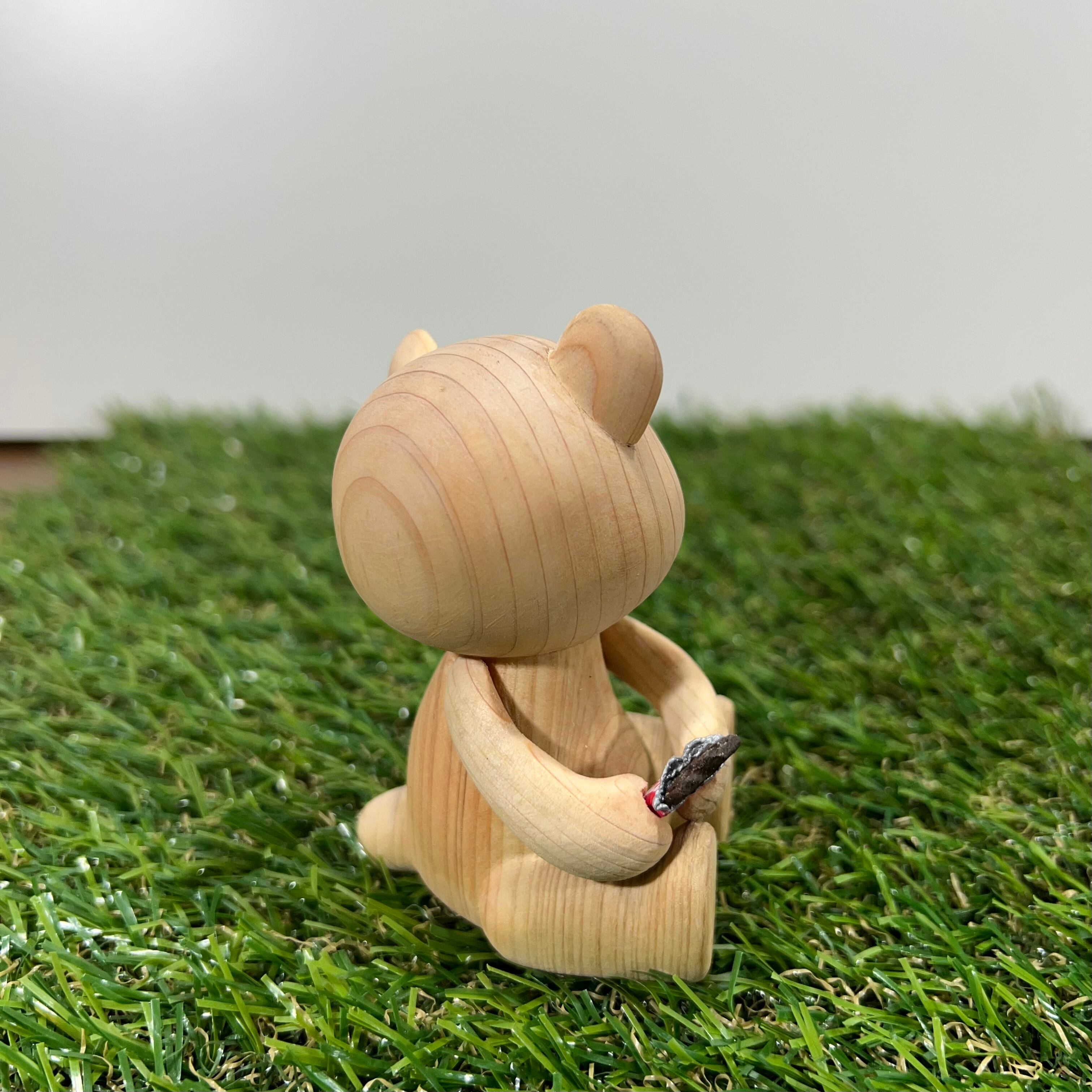 手のひらサイズの可愛い木彫りのちびくまくん、